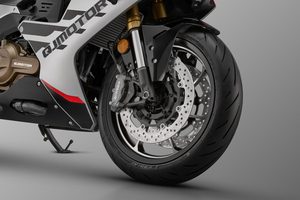 Bremse vorne: Doppelscheibe, 320 mm Durchmesser, mit Vierkolben-Festsattel von Brembo (mit ABS)