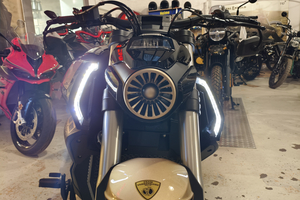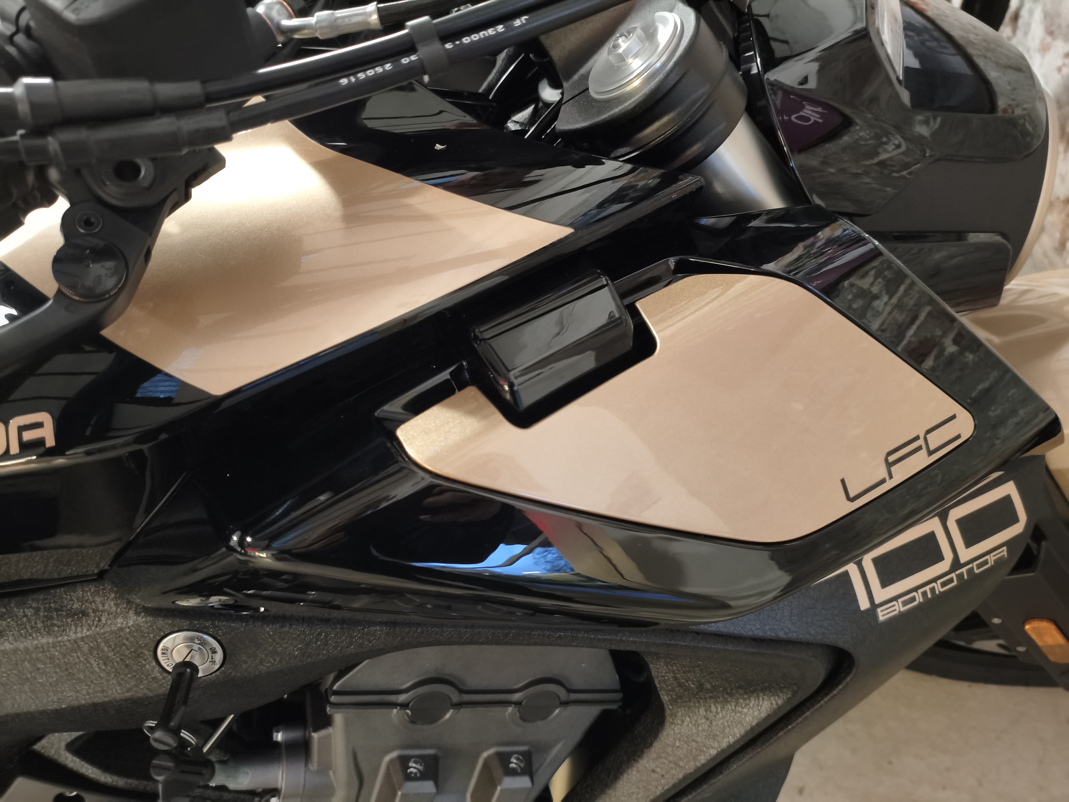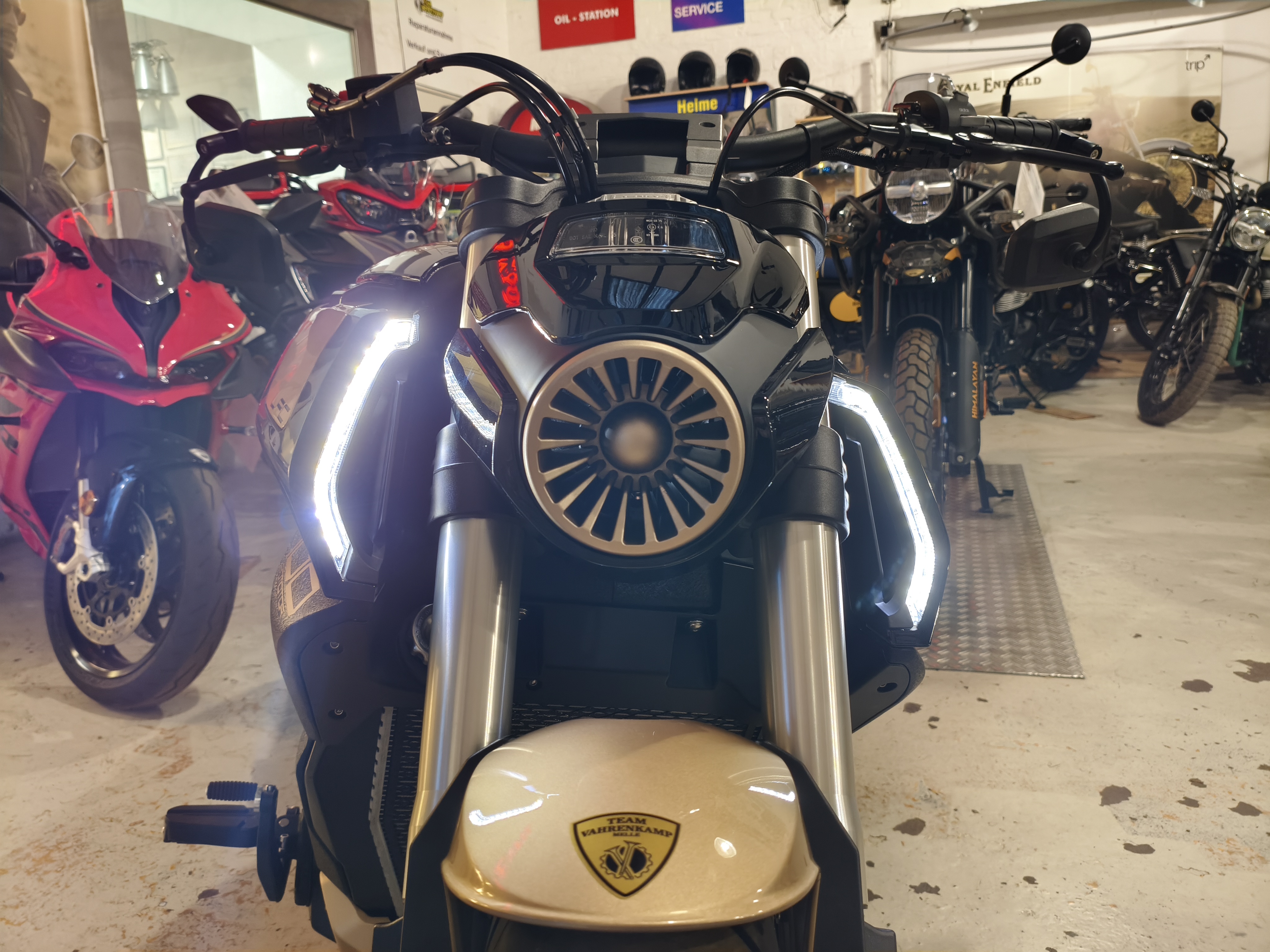 Die LFC 700 Pro besticht durch ein weiteres, einzigartiges Merkmal: die elektrischen, ausklappbaren Zusatzscheinwerfer in der Frontverkleidung. Dieses futuristische Detail, das für eine verbesserte Fernlichtfunktion konzipiert wurde, unterstreicht den progressiven Stil des Motorrads. Sie sind ein spektakuläres Design-Element, das die technologische Faszination der LFC 700 Pro auf einzigartige Weise demonstriert.