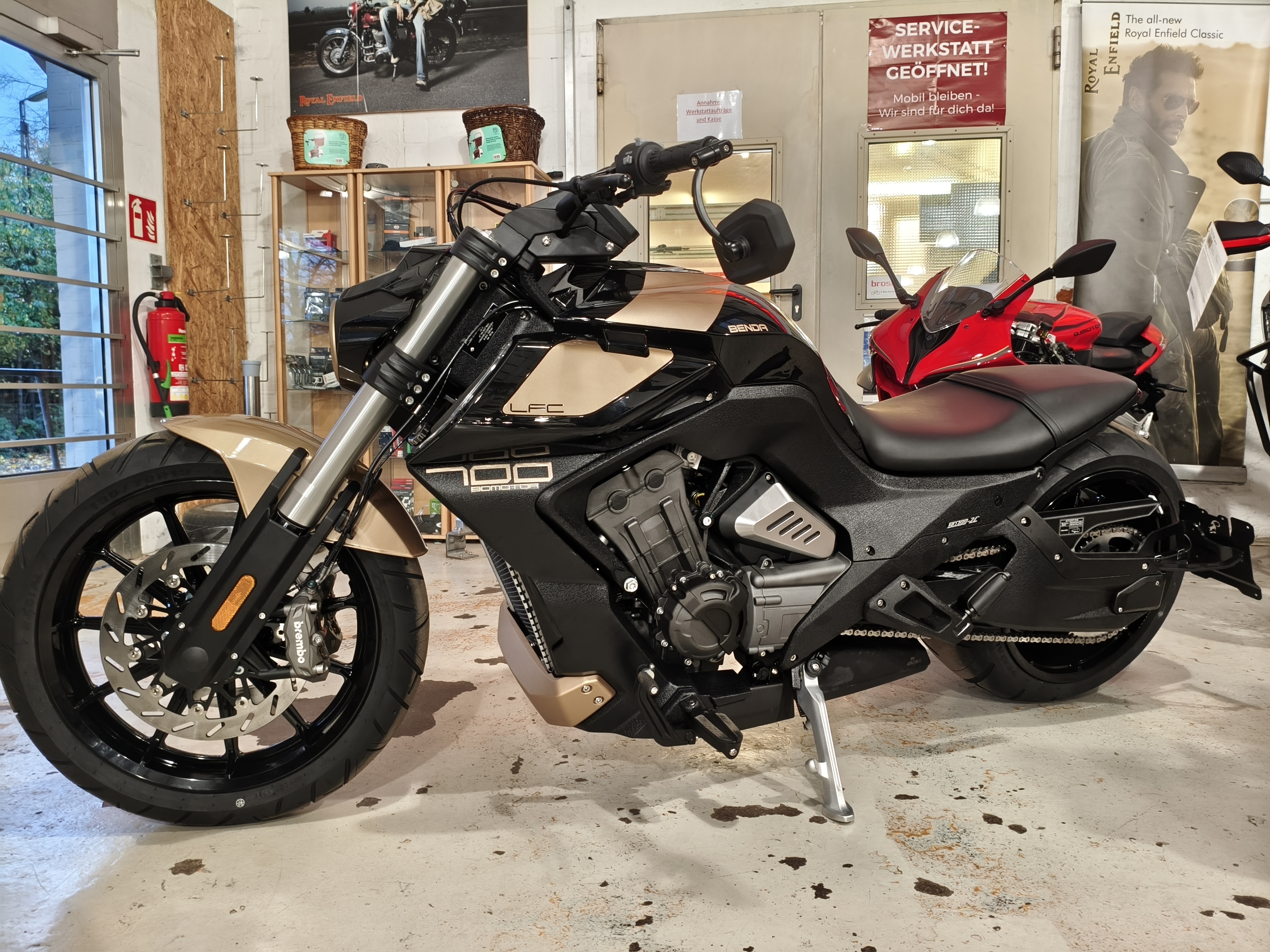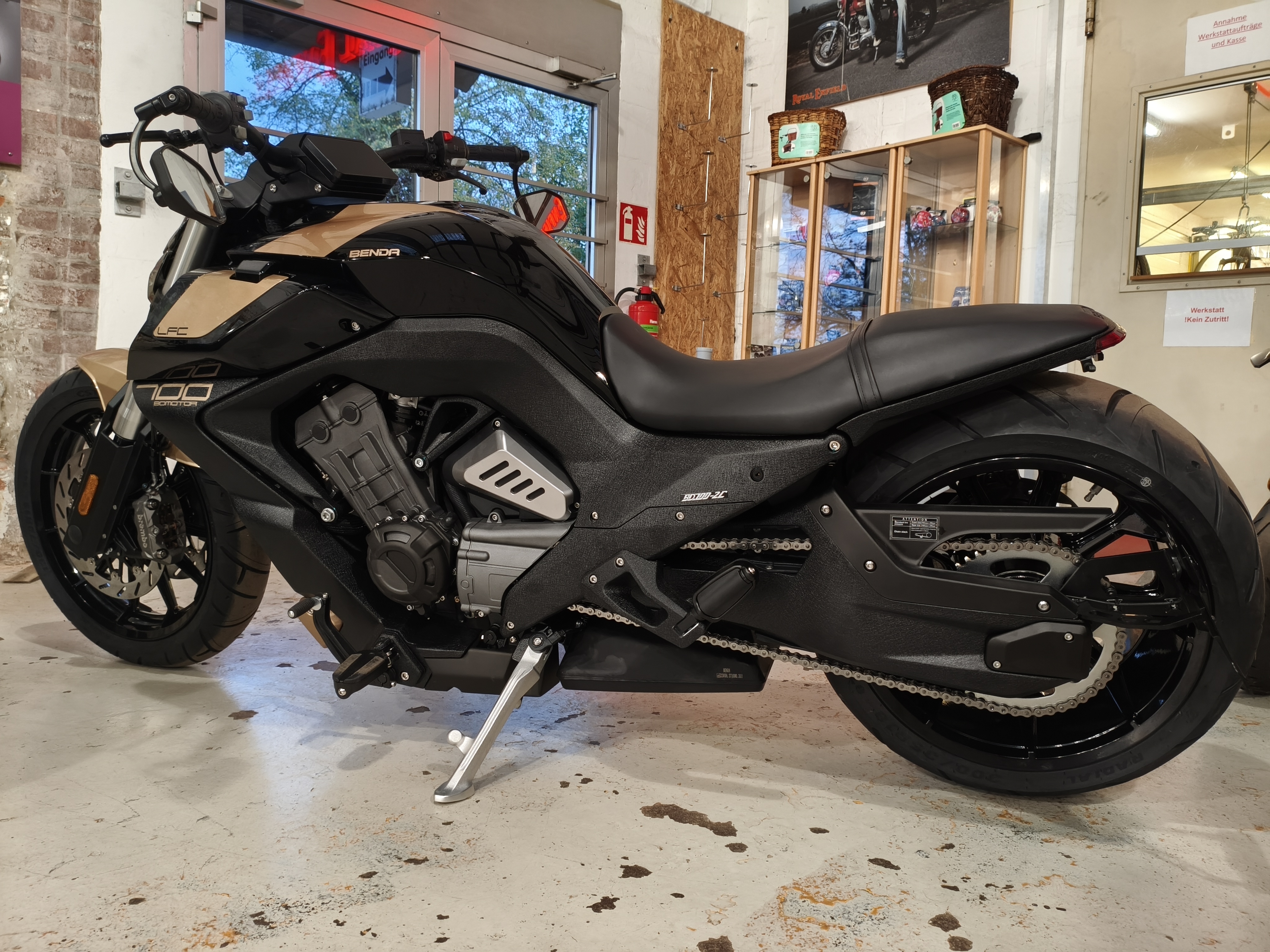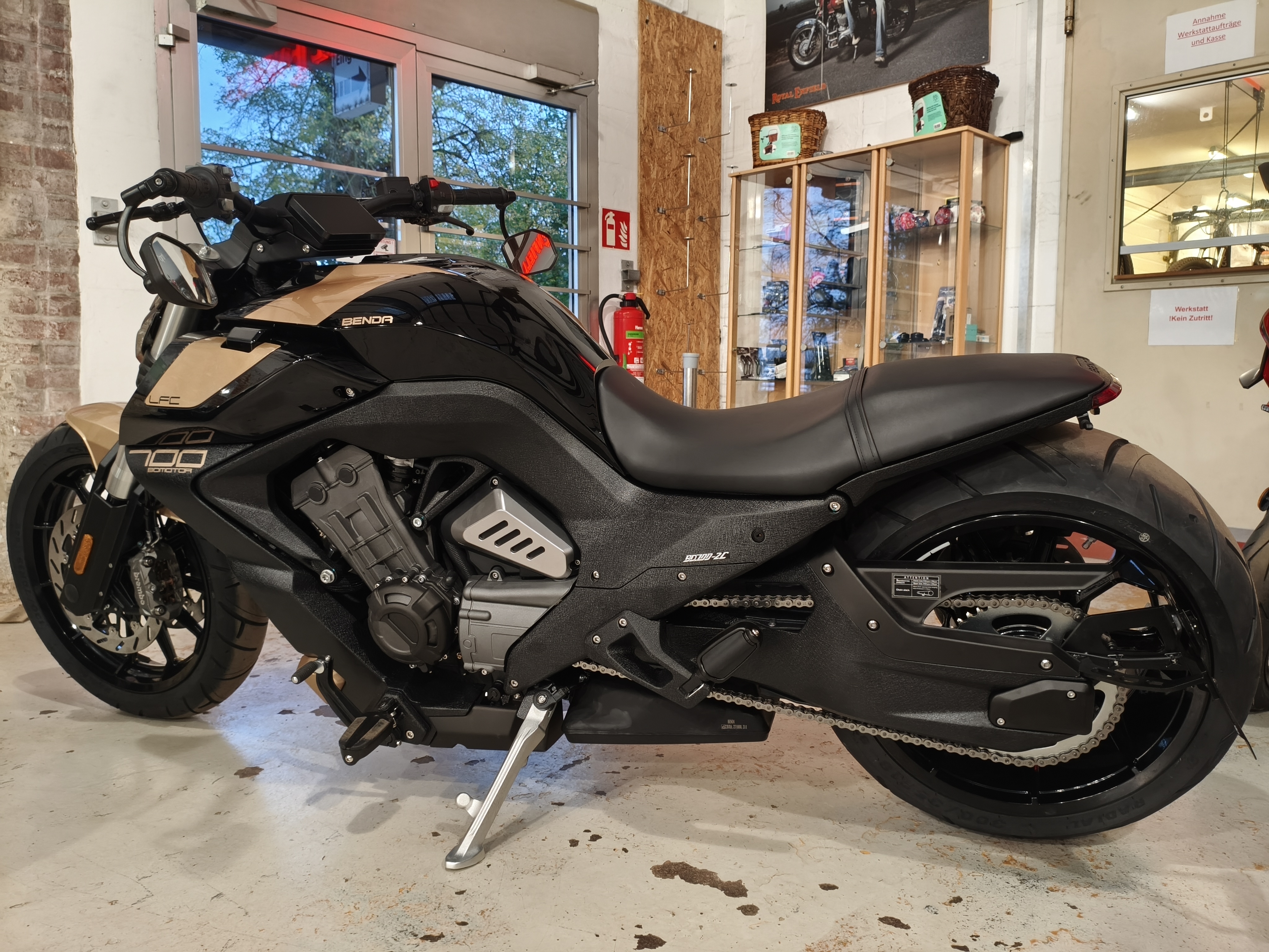 Dann ist die Benda LFC 700 Pro genau das Richtige für Sie! Dieses außergewöhnliche Motorrad revolutioniert die Straße mit seinem markanten Design und modernster Technologie.