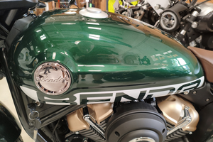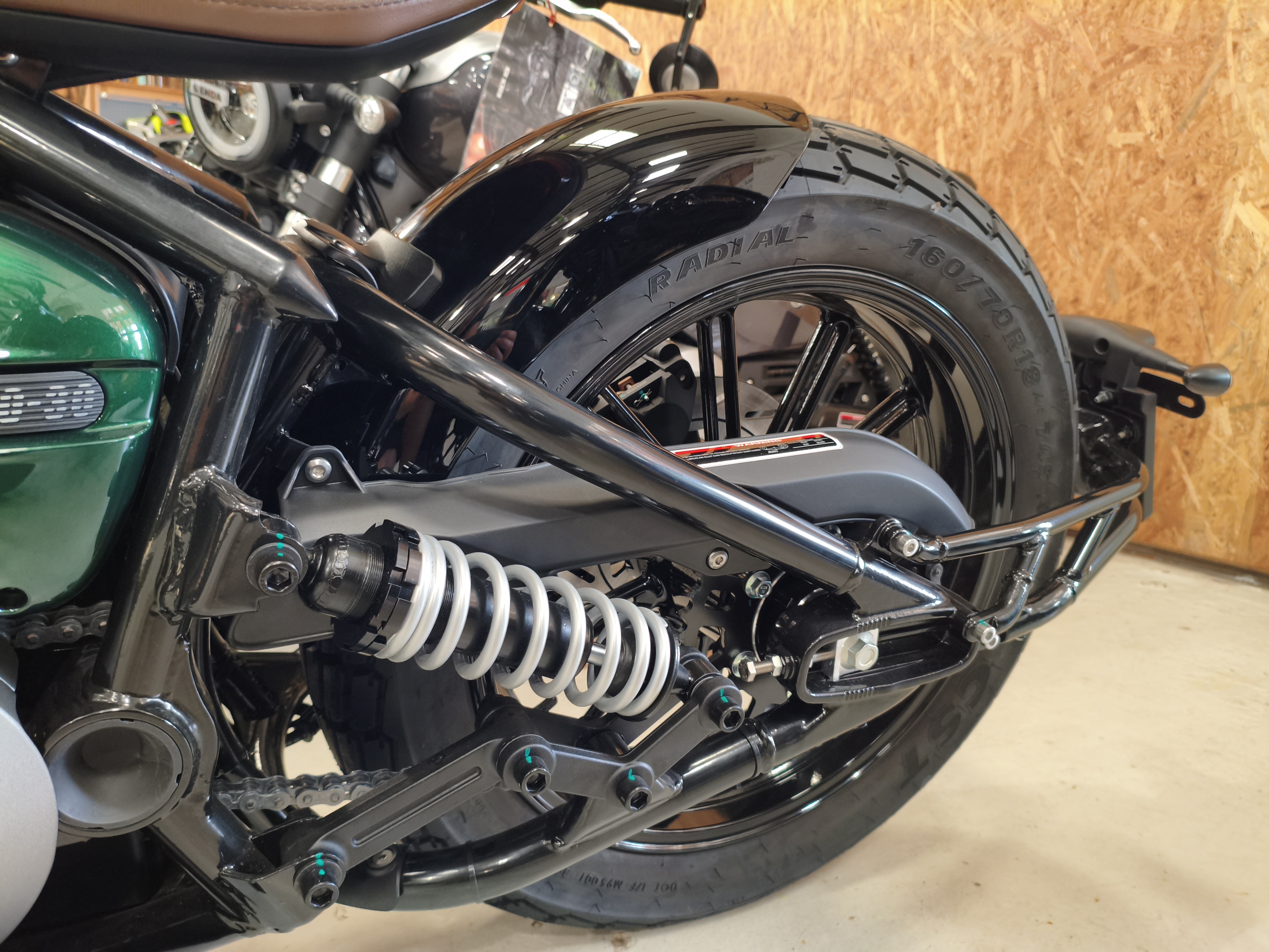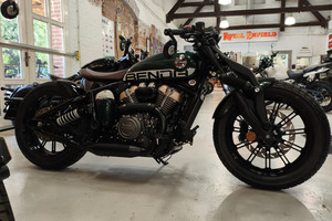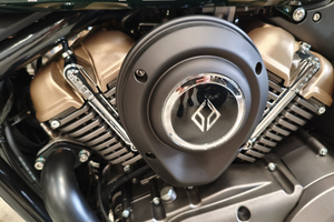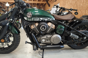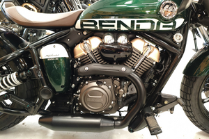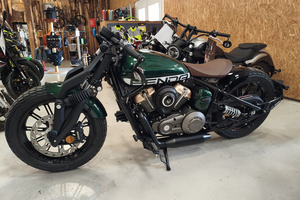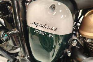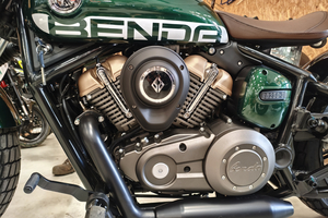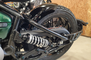 Die Napoleon interpretiert den klassischen Bobber-Stil völlig neu. Der absolute Hingucker ist die Multilink-Vordergabel und der freischwebende Sitz. Diese Kombination sorgt für eine unverwechselbare Silhouette und eine markante, ergonomische Fahrposition. Mit den breiten Reifen (130er vorne, 160er hinten!) und dem massiven Auftritt wirkt sie deutlich erwachsener als ihre Konkurrenz.