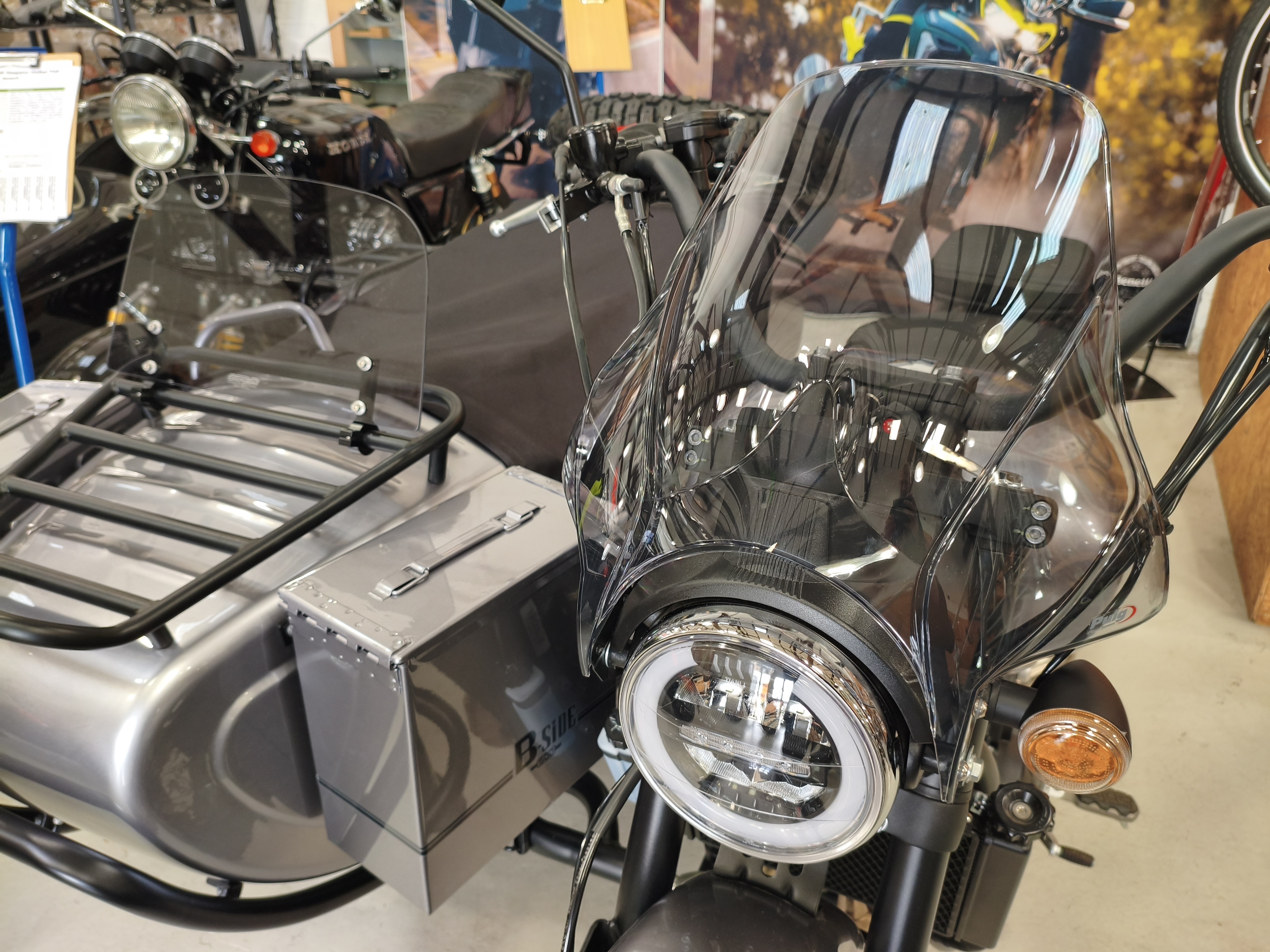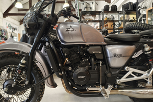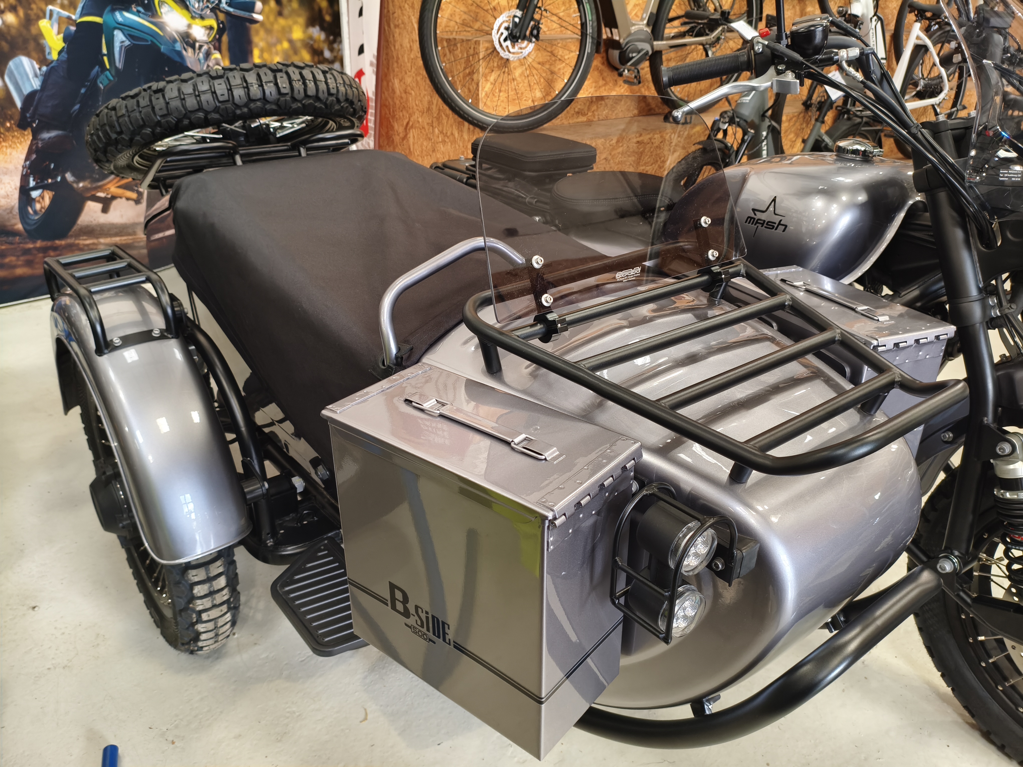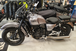 Diese neue Version wird von einem 54 PS starken Zweizylindermotor angetrieben und bietet mit ihrem 18-Liter-Tank eine komfortable Reichweite. Das neue MASH B-SIDE 500 ist das ideale Gefährt, um Landschaften in der näheren Umgebung zu erkunden oder auch auf große Fahrt zu gehen. Egal ob allein oder in Begleitung, bietet es für 2 weitere Personen und dem Fahrer ausreichend Platz. Lang ersehnt, ein Motorradgespann von MASH mit mehr Leistung in gewohnter, ansprechender Optik. Robust und trotzdem formschön bietet dieses Gespann alles, was das Herz der Gespannfans begehrt. Und das zu einem unschlagbaren Preis.